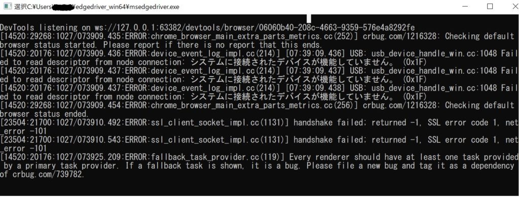 これはどうやらWebアクセスするためのSleniumのwebdriverのインフォメーションウインドのようです。がんばって探してみました!